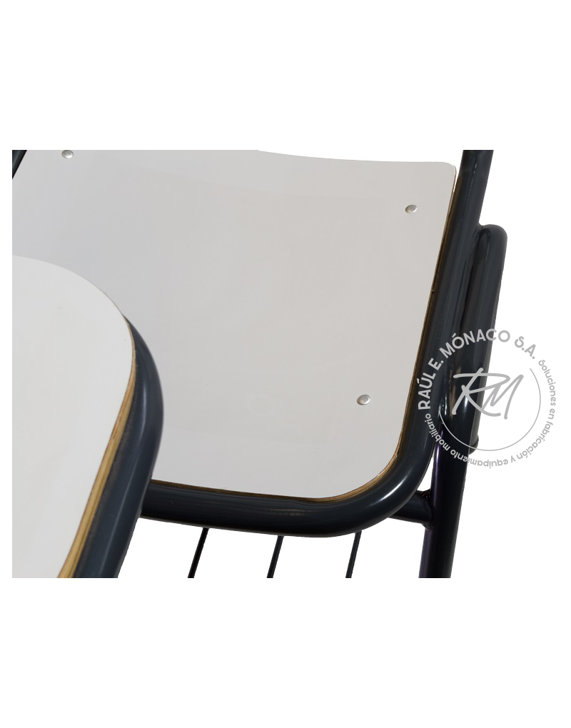 Estructura metálica. Paleta de escritura fija reforzada. Rejilla inferior porta-útiles.